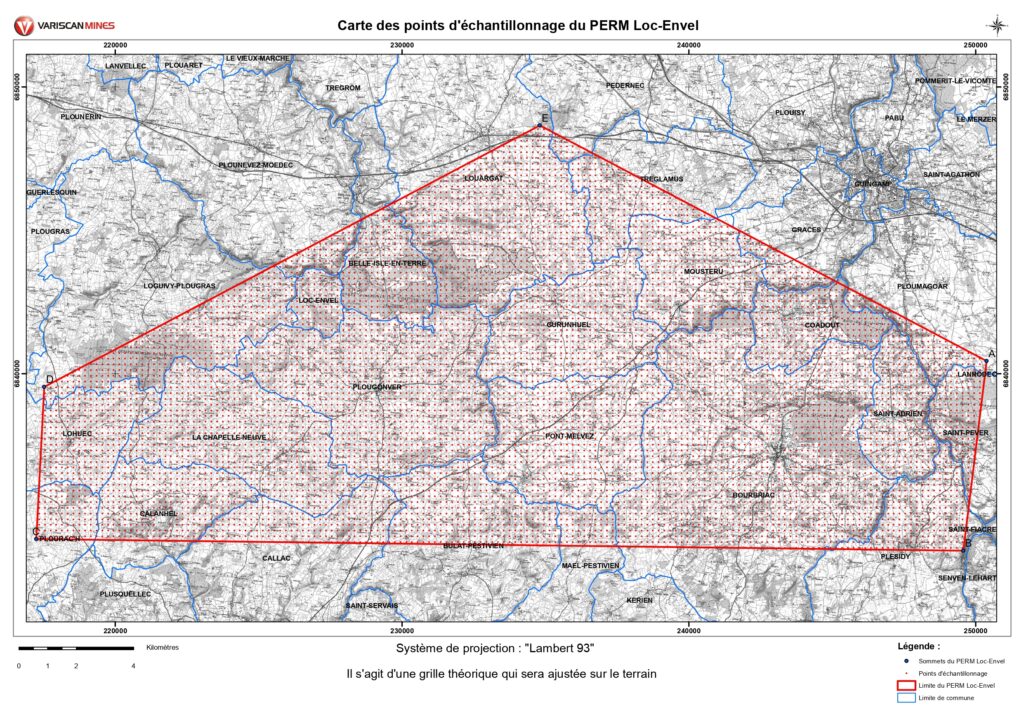 Carte des points d’échantillonnage du PERM Loc-Envel – Source : Variscan Mines